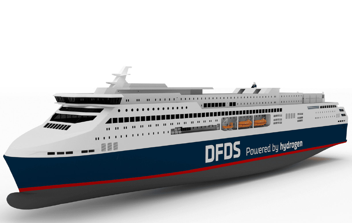 A group of companies have partnered up to develop a 100% hydrogen-powered ferry for DFDS’ Oslo – Frederikshavn – Copenhagen route. The ferry will be powered by electricity from a hydrogen fuel cell system that emits only water and can produce up to 23 MW to propel the ferry. The ferry that has the working name Europa Seaways, is designed for 1,800 passengers and has a capacity for 120 lorries or 380 cars.